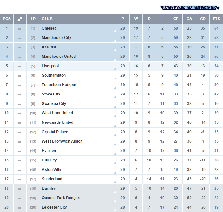 English Premier League Table / English Premier League 2018-19: EPL Table, Transfer News ... : Click here to add competitions to your favourites.. This is the page for the premier league, with an overview of fixtures, tables, dates, squads, market values, statistics and history. But in the end, liverpool made history by winning their first league title since 1990, which was also the club's first of the premier league era and 19th overall. Tables are subject to change. 1st, 2nd, 3rd, 4th europa league: Premier league with stats and match results.